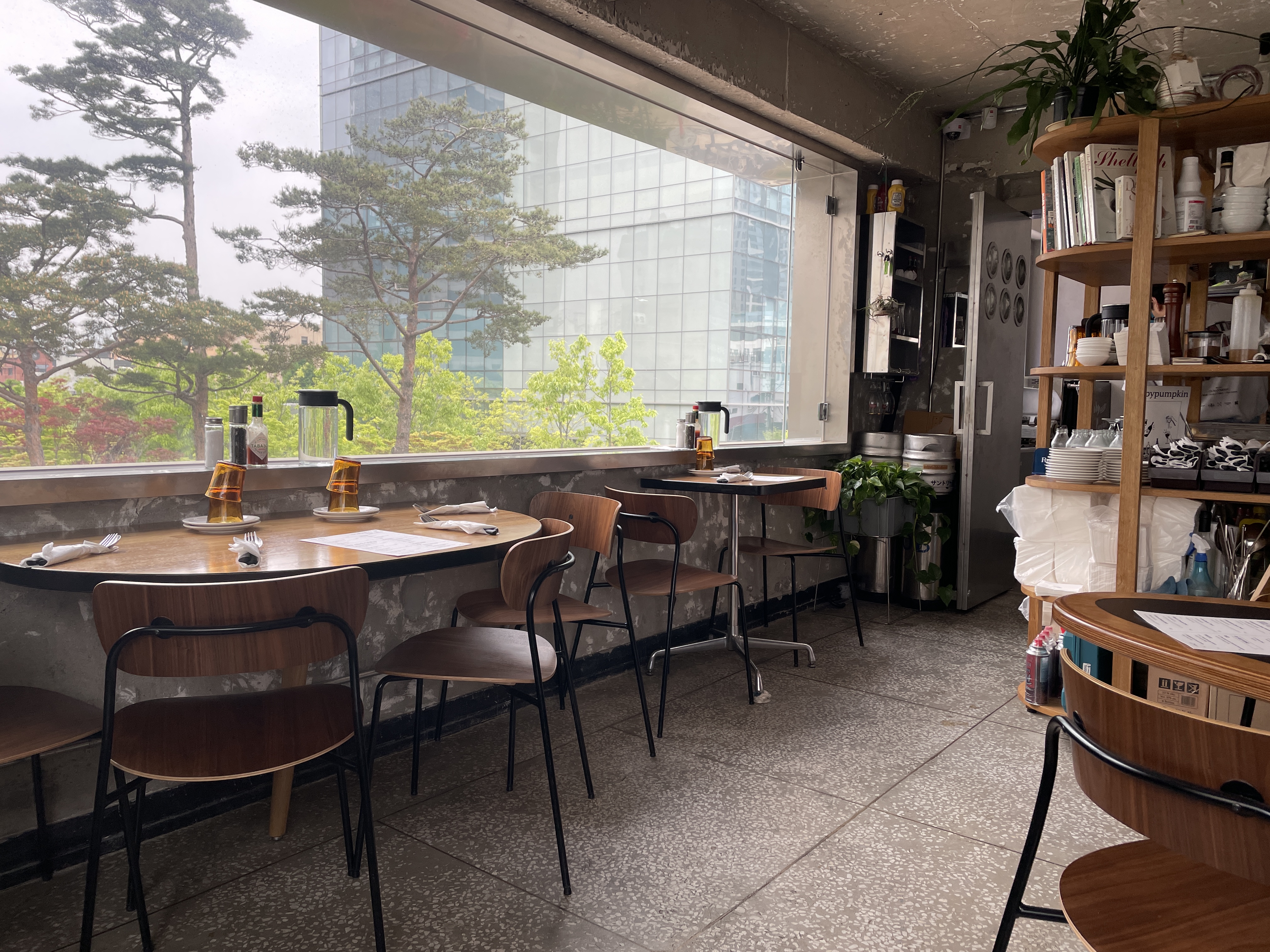 매장은 2층 카페와 크기가 같은데 아무래도 주방을 카페보다 넓게 쓰다보니 좌석 공간은 카페보다는 조금 좁은 느낌이 듭니다. 전반적으로 넓지 않은 곳이라고 보면 됩니다.