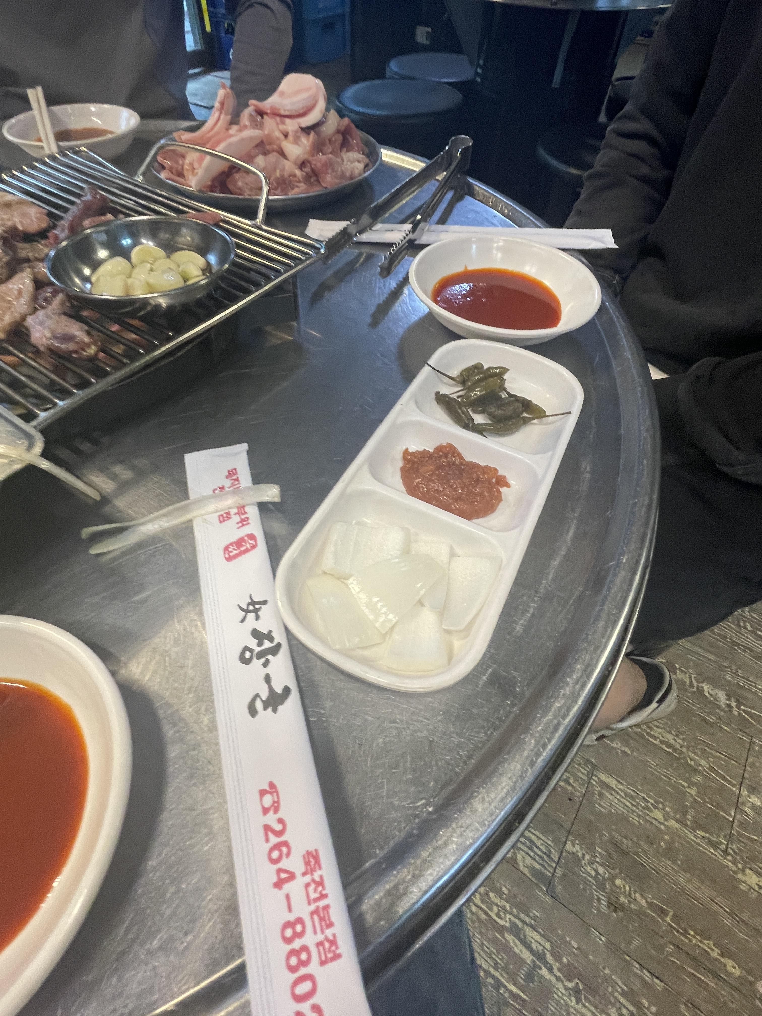 고기 가격 자체가 저렴하기 때문에 별다른 반찬은 나오지 않고 소스 정도가 나옵니다. 반찬을 많이 먹지 않는 저는 이것도 괜찮았어요.