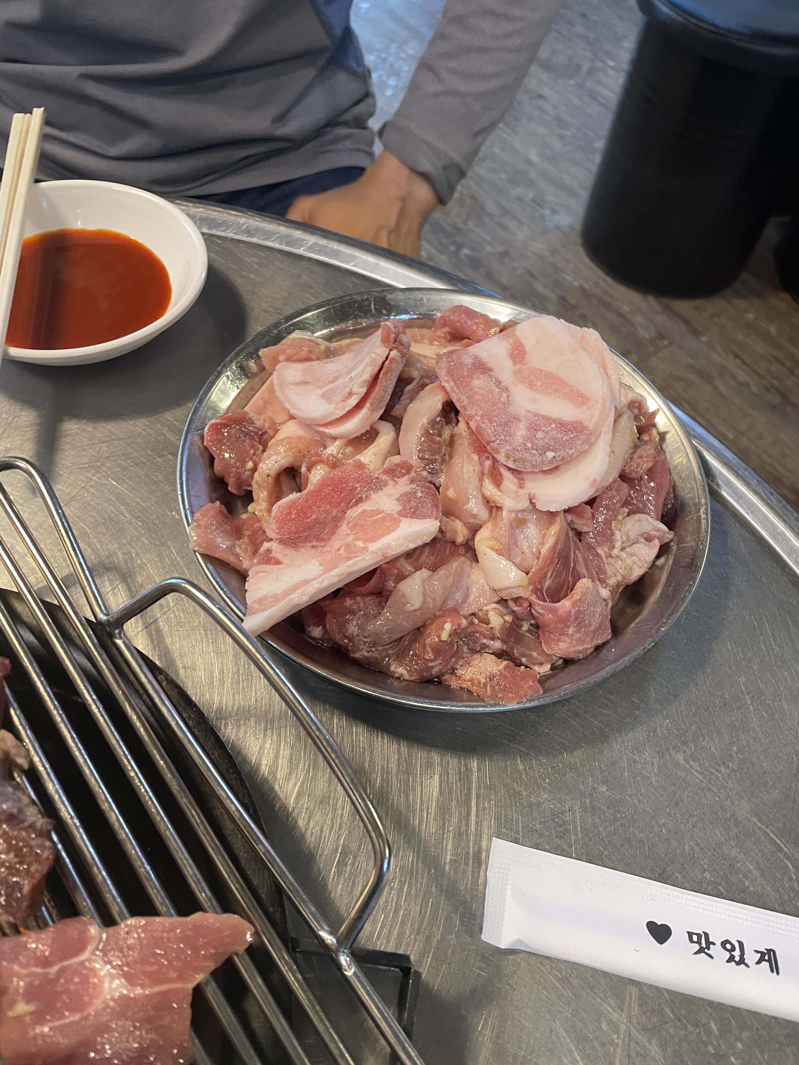 고기는 부위별로 쫄깃쫄깃한 것도 있고 얇은 것도 있고해서 먹는 재미가 있었습니다. 고기에 연탄불의 향이 은은하게 입혀져있습니다. 저는 살모둠만 먹었는데 특수부위를 좋아하시면 특수부위도 섞어서 주문하시길 추천드립니다.