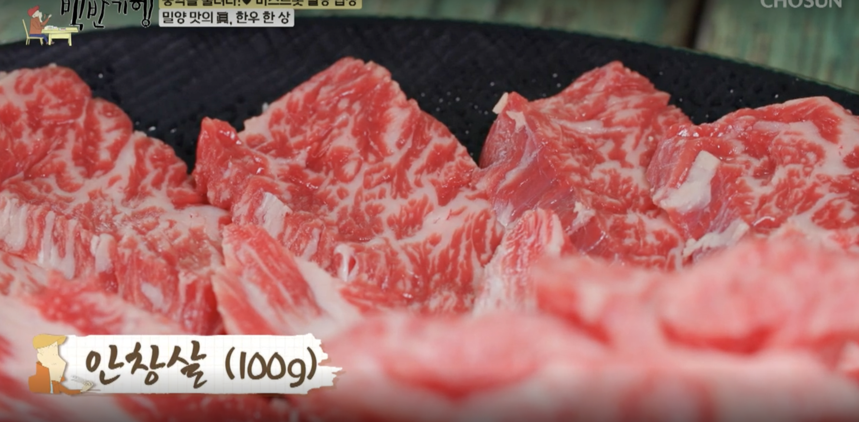 육즙이 진하고 쫄깃한 안창살. 고소한 풍미가 아주 맛이 좋은 부위다.