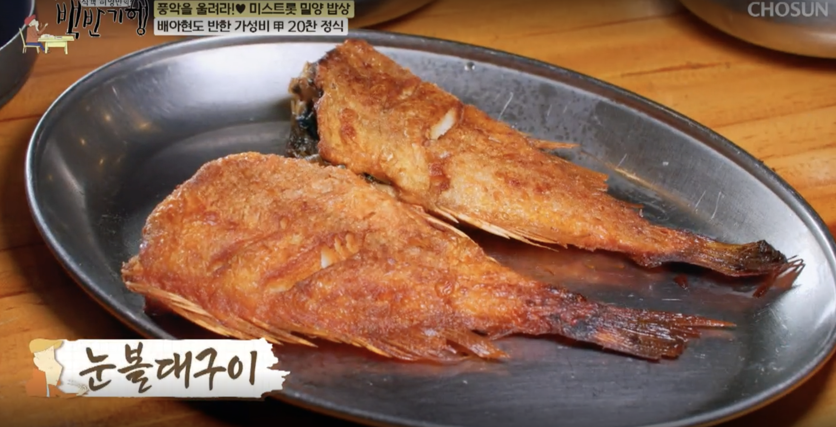 메뉴는 돌솥밥 단일 메뉴다. 기름에 잘 튀긴 빨간고기 눈볼대구이를 메인으로 식사할 수 있다. 생선은 겉바속촉! 잘 지어진 흰쌀밥에 방금 구운 곱창김만 있어도 꿀맛인데, 생선구이까지 더해진다.