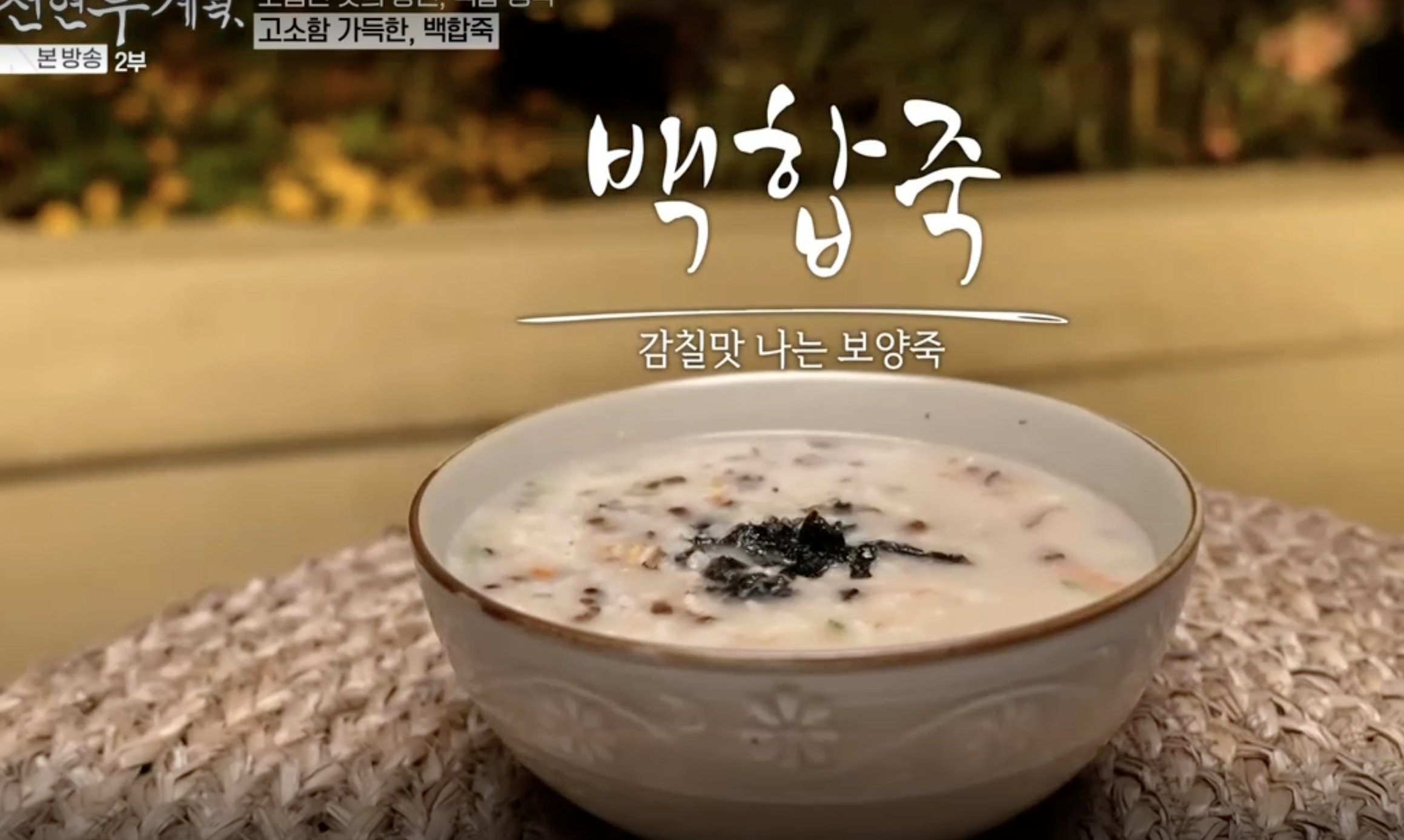 백합죽은 백합 육수로 끓여낸 보양죽이다. 감칠맛이 폭팔하는 백합죽으로 백합정식을 마무리 한다.