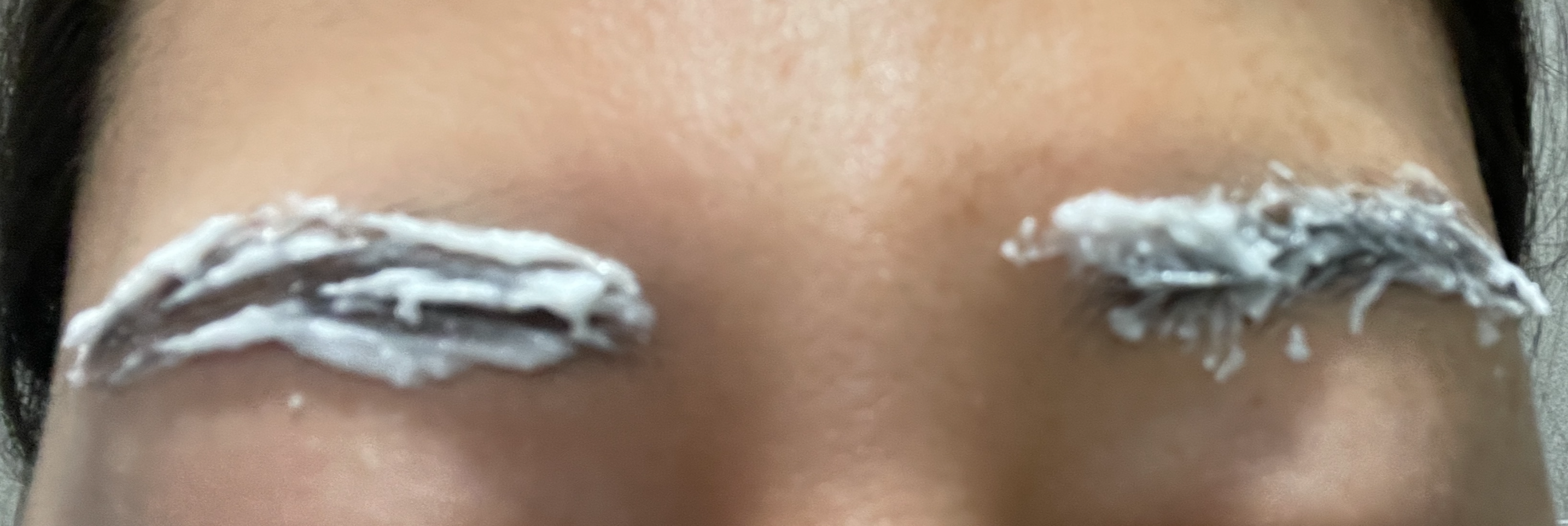 저는 막 예민한 편은 아니라서 그냥 하긴 했는데 바르고 있는 과정 중에는 살짝 화한 느낌이 있긴 하더라고요. 염색하는 시간은 1분30초~2분 이라고 되어 있습니다. 1분30초부터 살짝 닦아서 컬러를 보시면 좋습니다. 저는 좀 눈썹이 많이 진하고 색이 빨리 안 나서 2분을 채웠습니다.