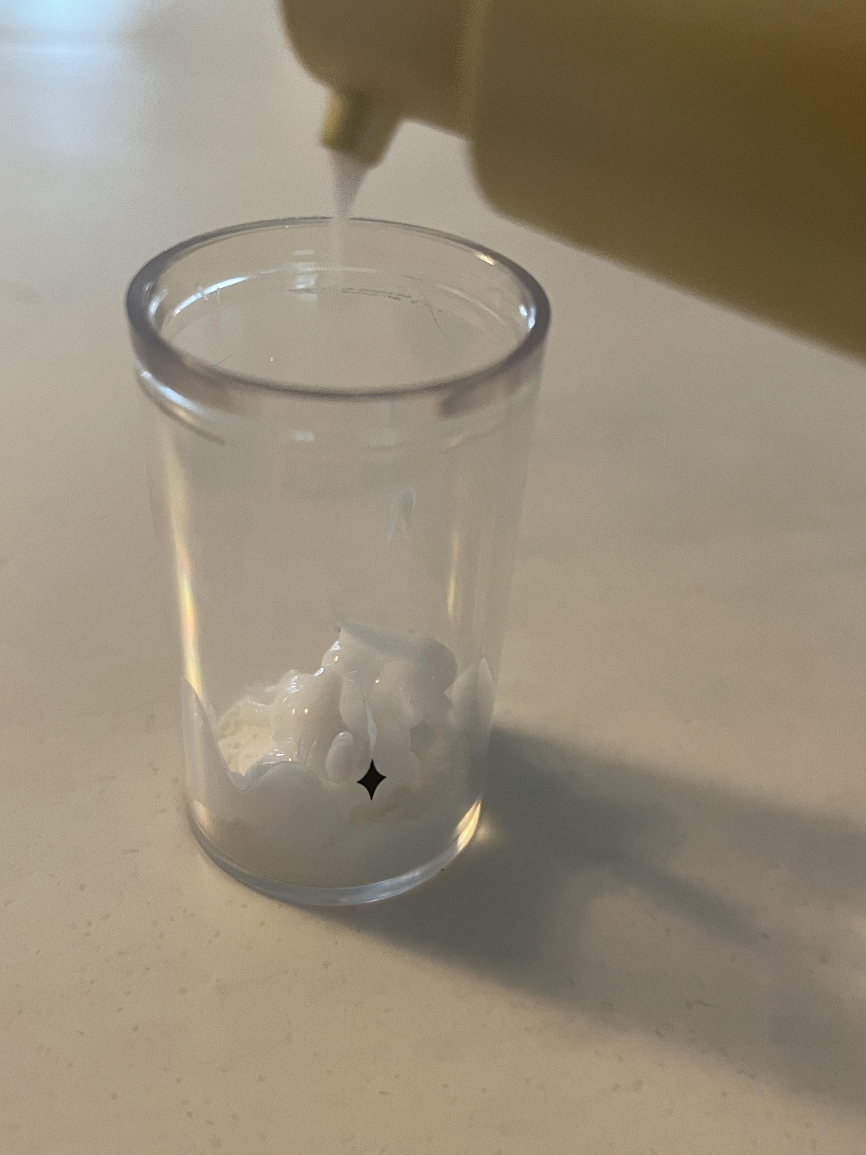 가루를 넣어준 후에는 튜브에 들어있는 제품을 펌핑해서 넣어줍니다.