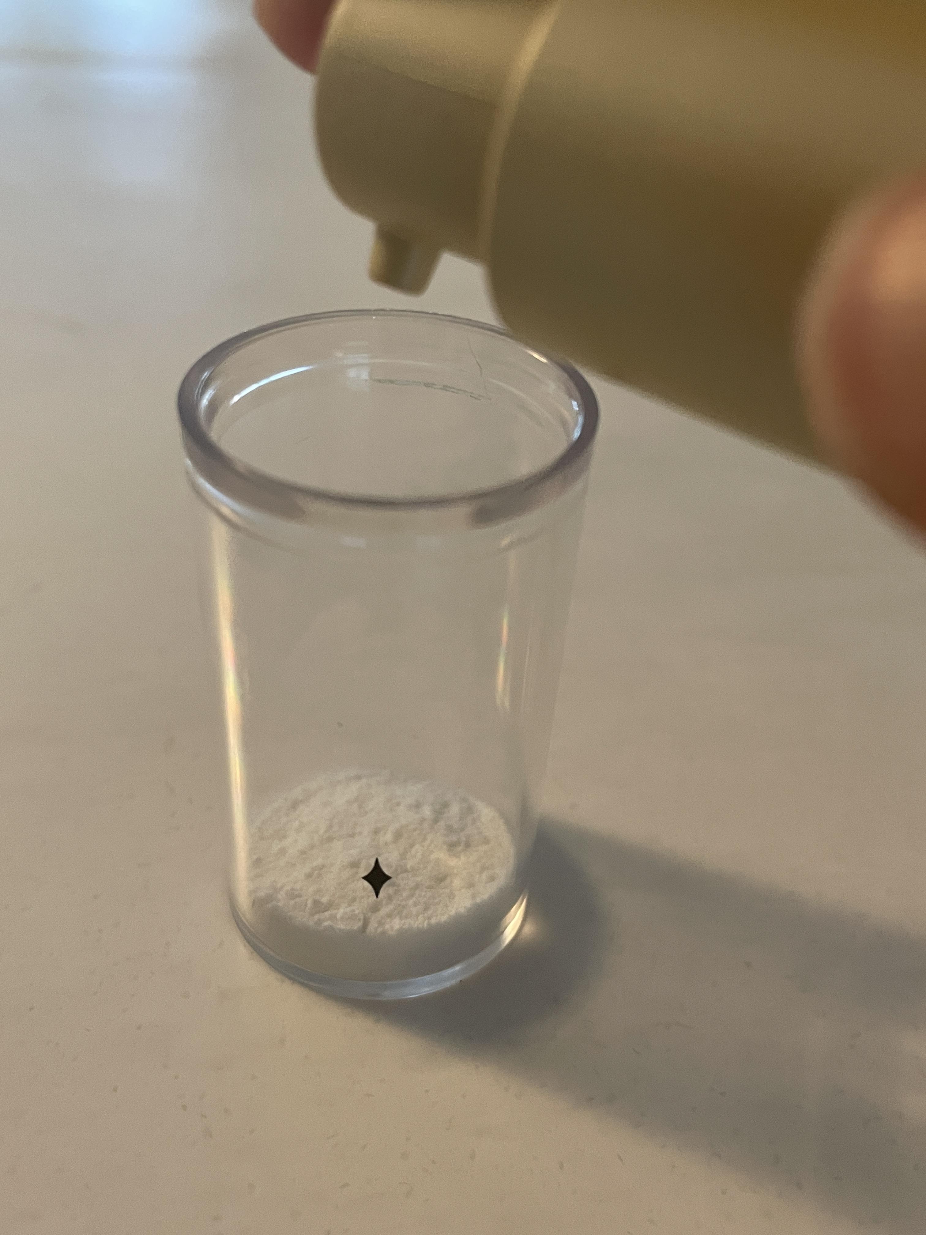 가루를 뚜껑에 먼저 털어 넣어줍니다.