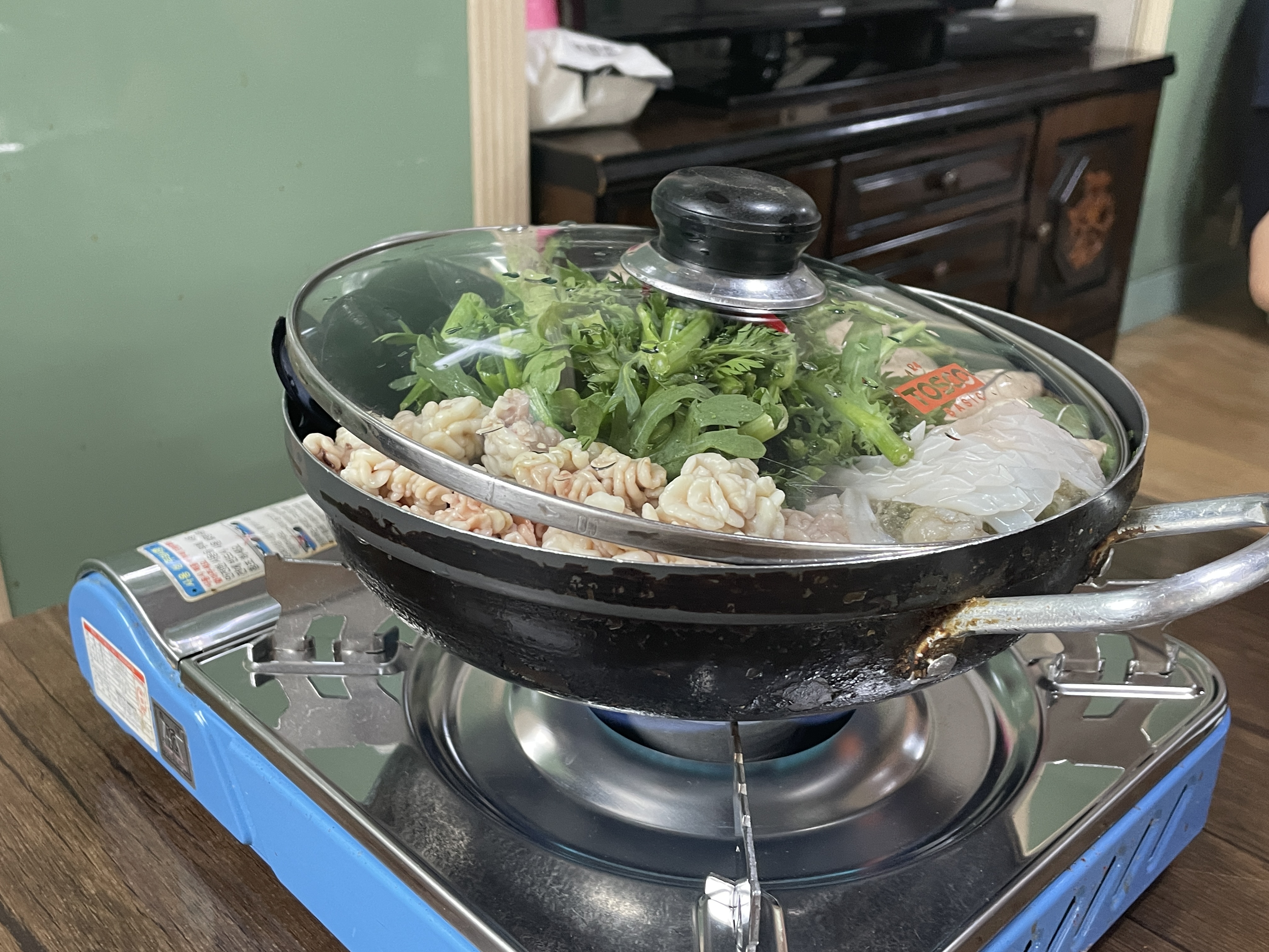 처음에는 이렇게 부르스타 위에 올려주시는데 끓을 때까지 기다렸다가 먹으면 됩니다. 혹시 빨리 안 끓으면 가스가 없는 건 아닌지 체크 한 번 해주시고요.
