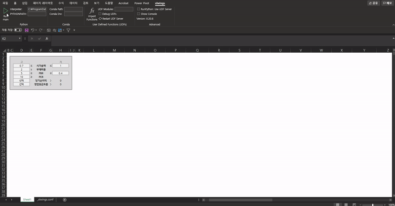 몇 가지 조건을 입력하면, 그 조건에 맞는 종목과 종목의 재무정보 등을 출력해주는 엑셀툴을 만들어보려 합니다.