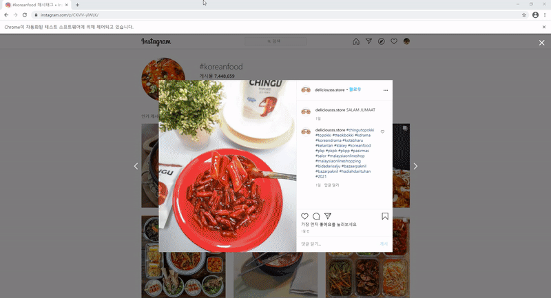 코드를 수행하면 인스타그램 메인이 뜨면서 자동으로 로그인이 되고,