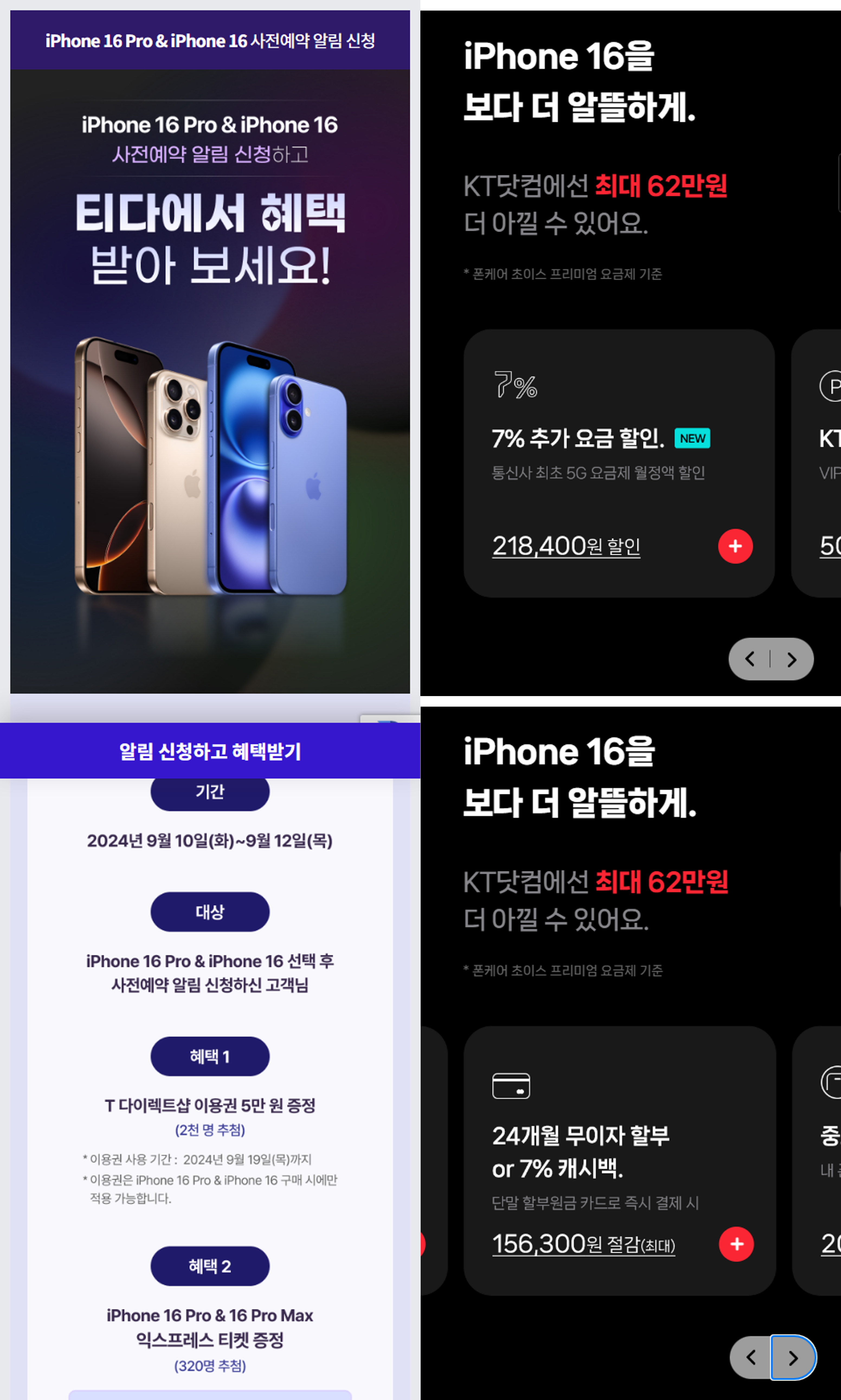 | 아이폰16 | 아이폰16플러스 | 아이폰16프로 | 아이폰16프로맥스 | |