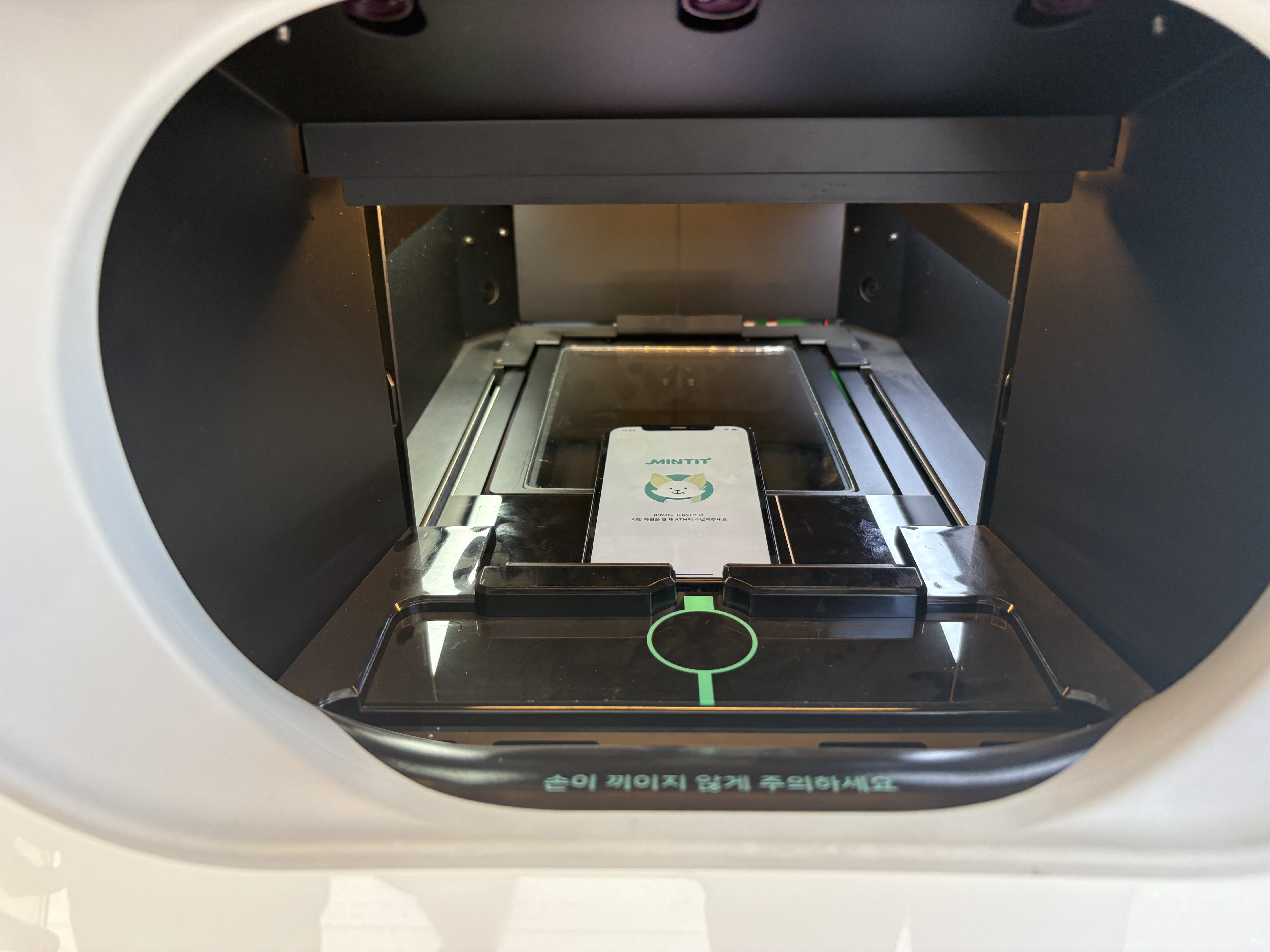 시키는 대로 다하면, 이제 중고폰을 기계 안에 넣으라고 합니다.