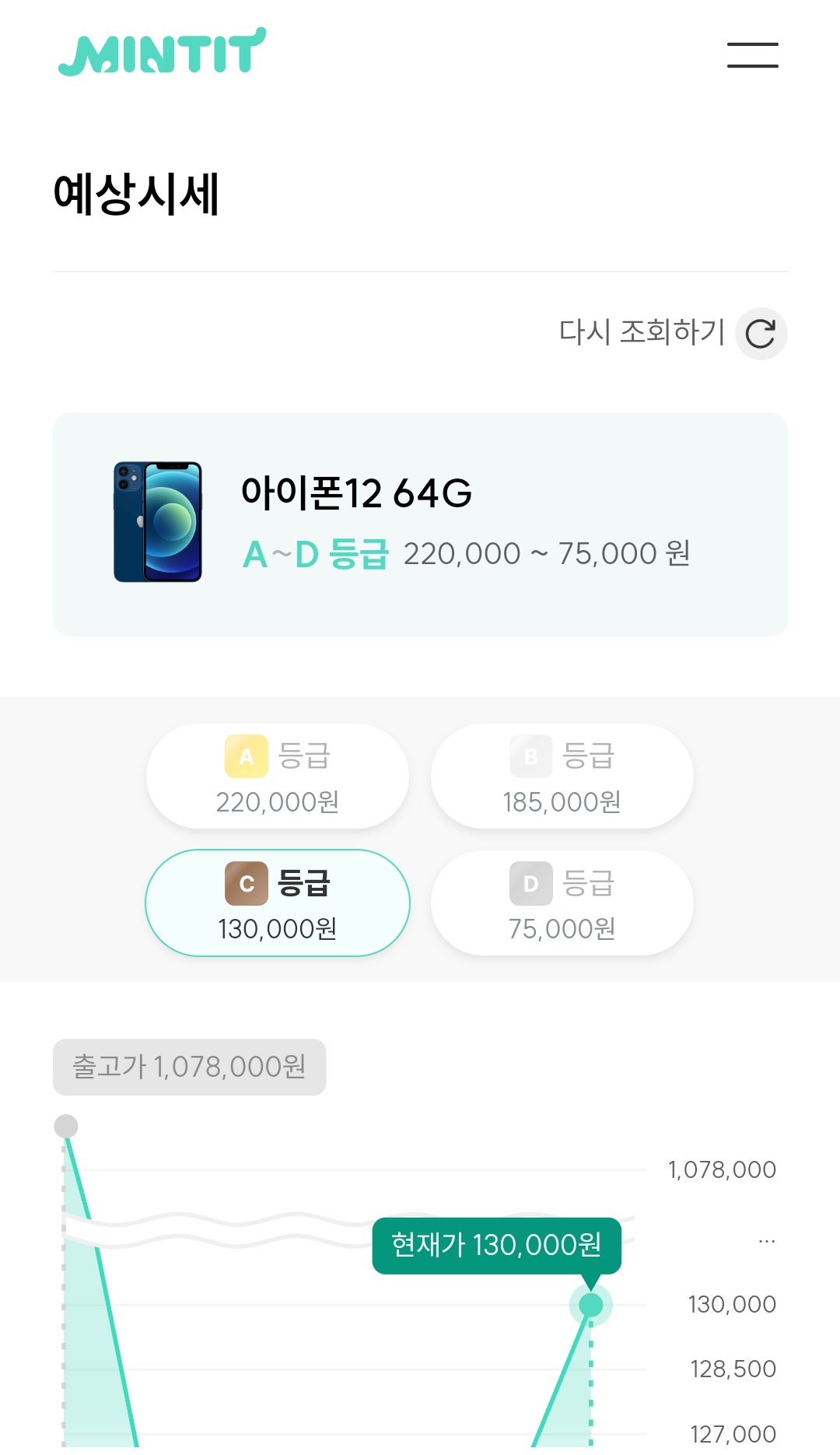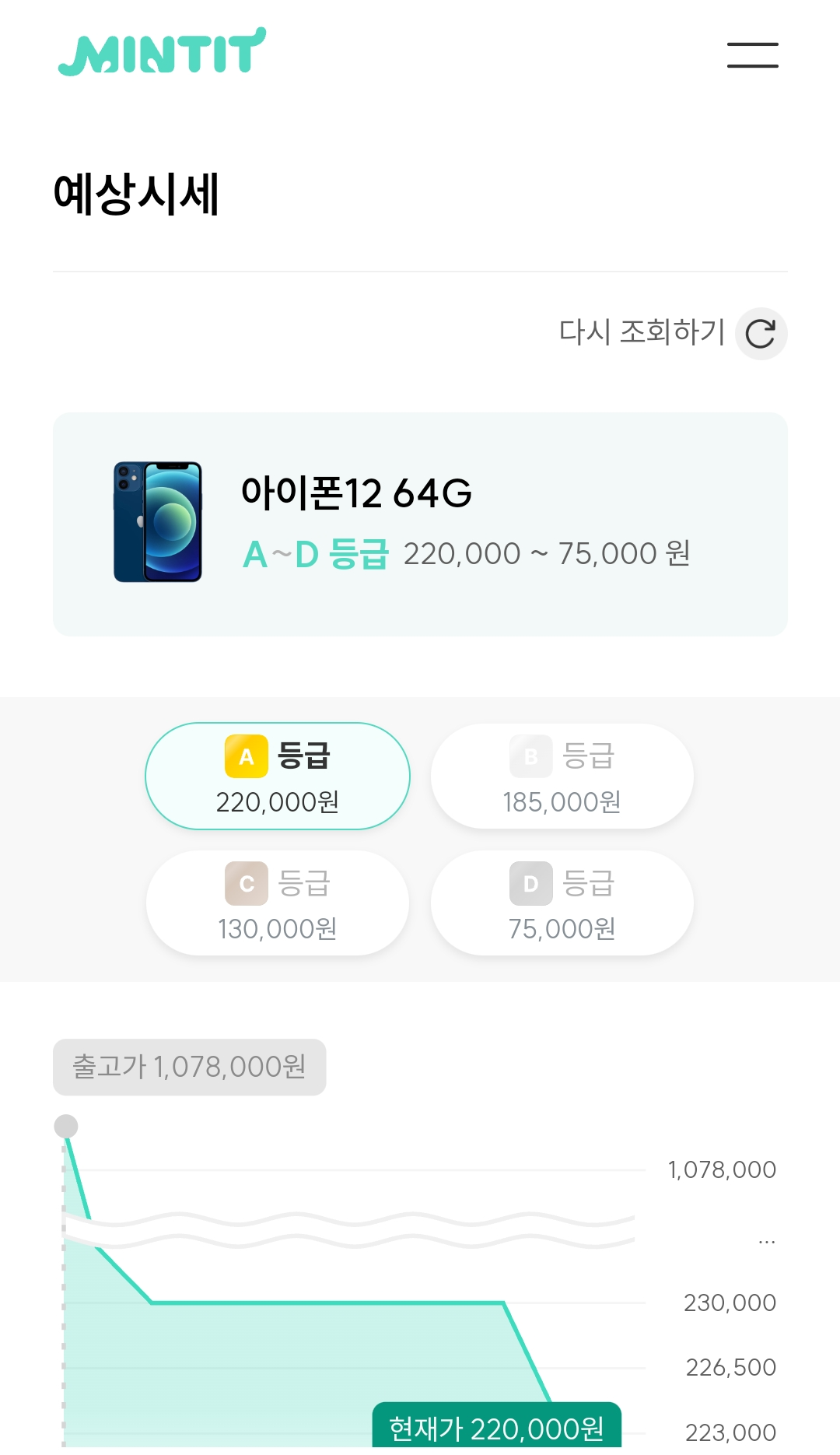 생각보다 등급도 낮도 그에 따라 할인되는 금액도 너무 크네요, 민팃.