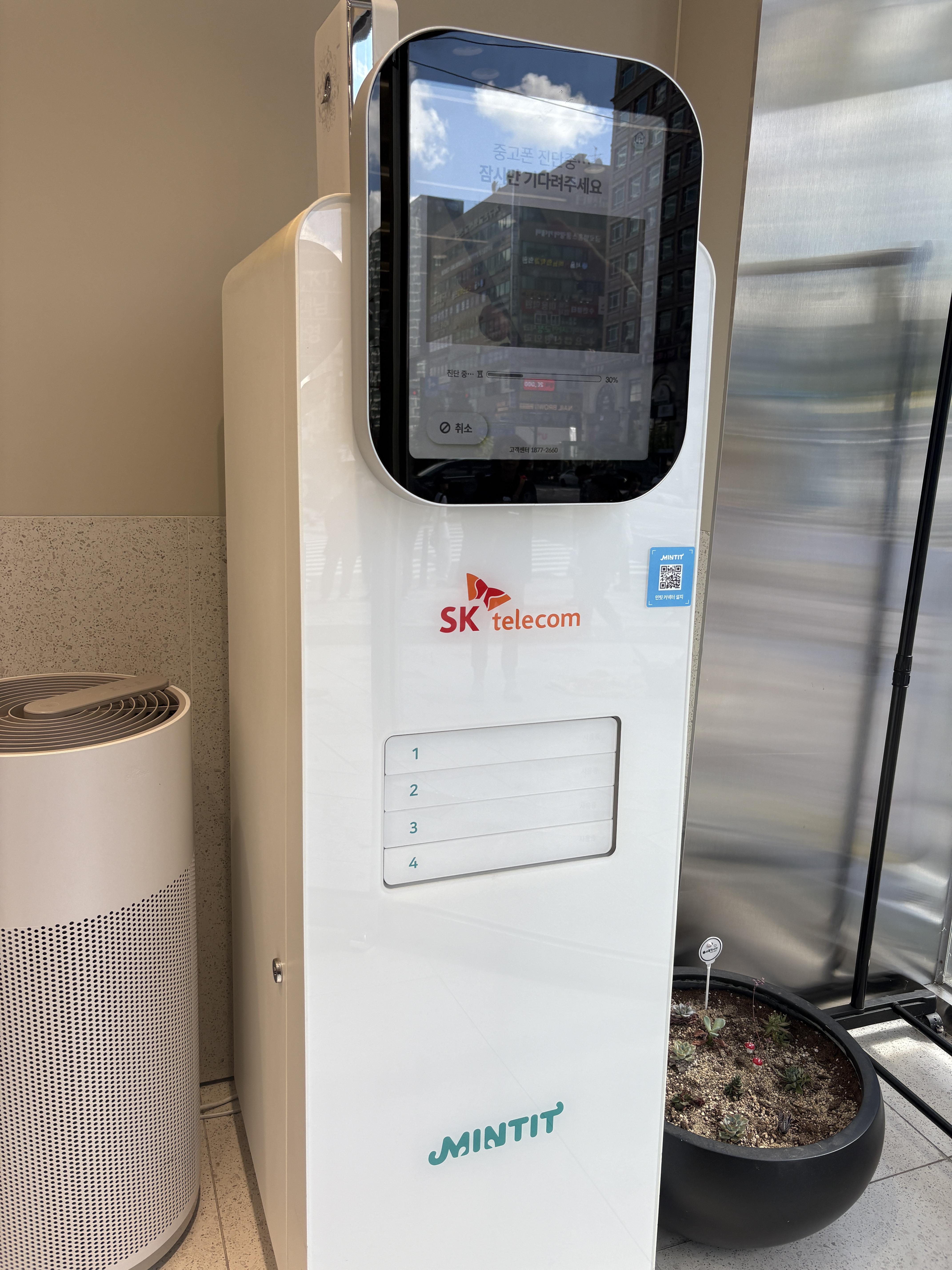 기계를 통해 비대면으로 중고폰을 판매할 수 있는 민팃입니다. 요새는 민팃 기계가 설치된 휴대폰 대리점 많더라고요.