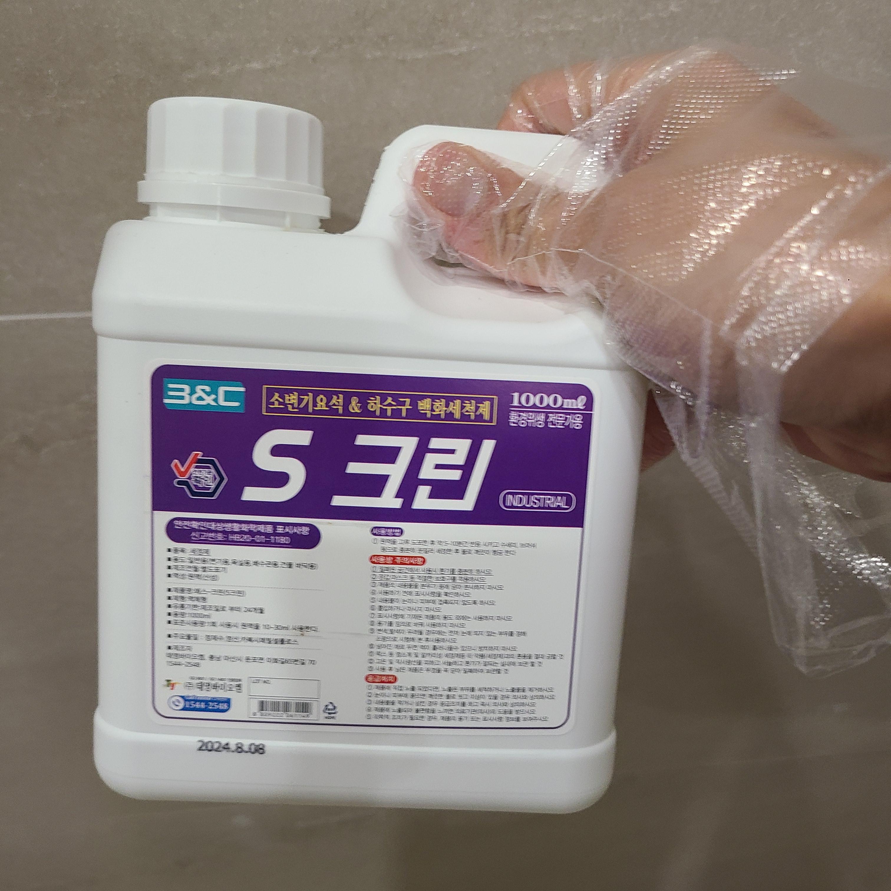 여러분, 지금 구매한 S크린이나 락스 같은 강알칼리 염소 계열 제품을 다룰 때 제발 마스크와 장갑 좀 끼세요!!!