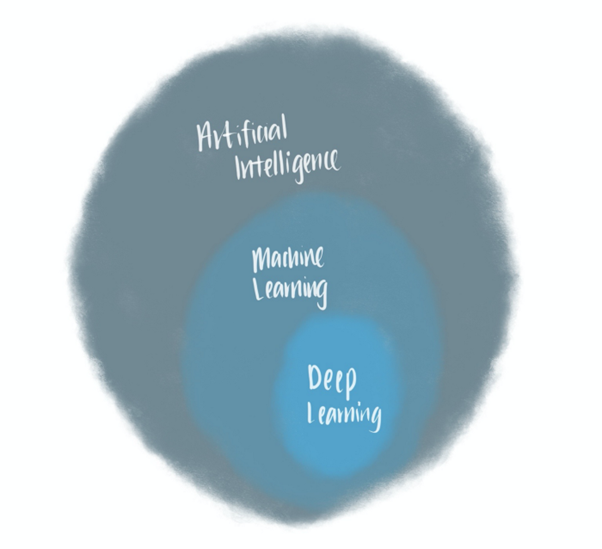 머신러닝과 밀접한 관련이 있는 유행어들입니다. 서로의 관계는 정확히 무엇일까요? 이것은 아래 다이어그램에 잘 드러나 있습니다.