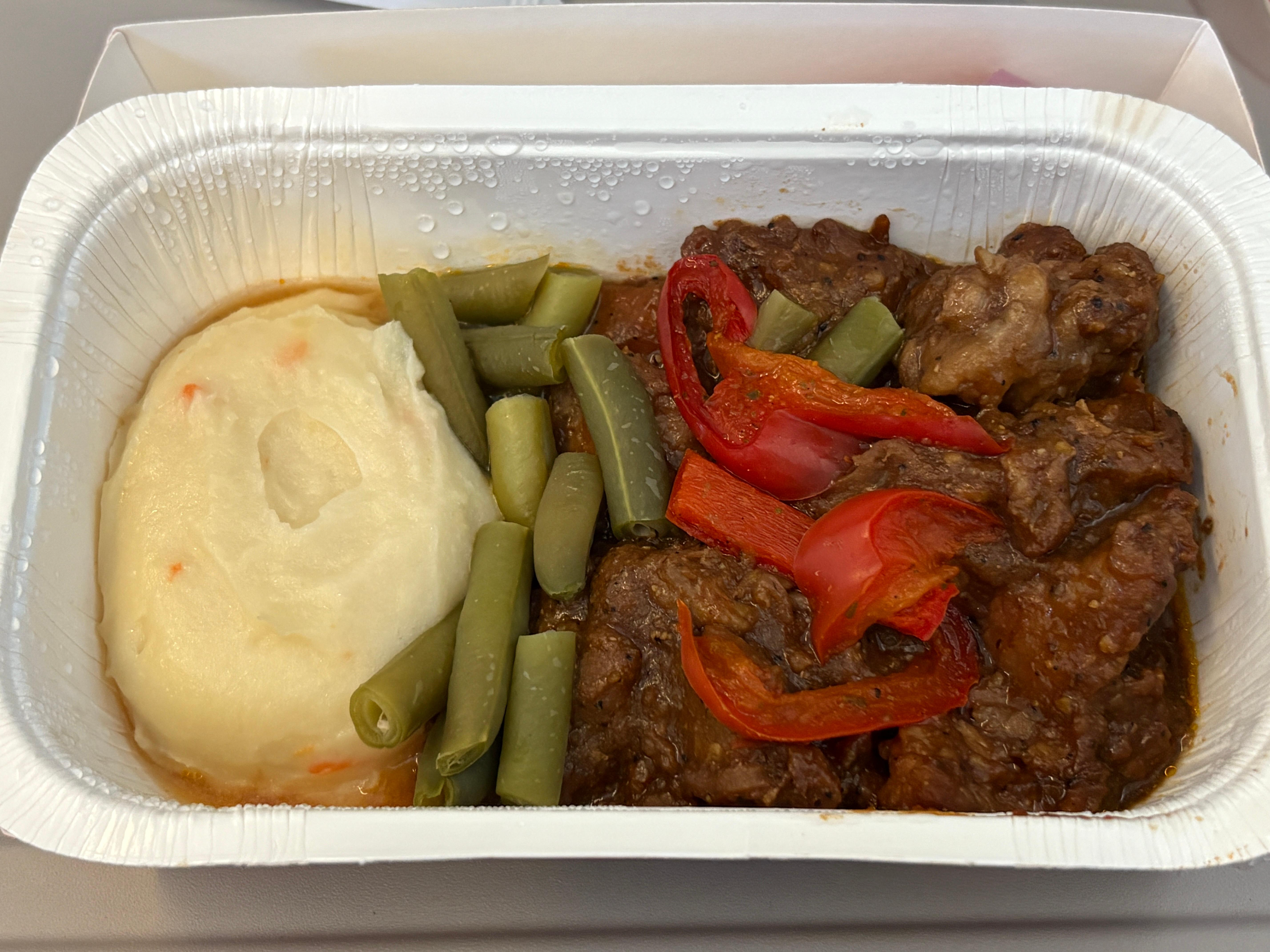 둘 중에는 이게 전반적으로 괜찮았던 기내식 메뉴였다. 그도 그럴 것이 아주 기분이 좋은 상태다. 다만, 좀 짠 편이다. 그래도 매쉬 포테이토랑 적절히 먹으니 먹을만했다.