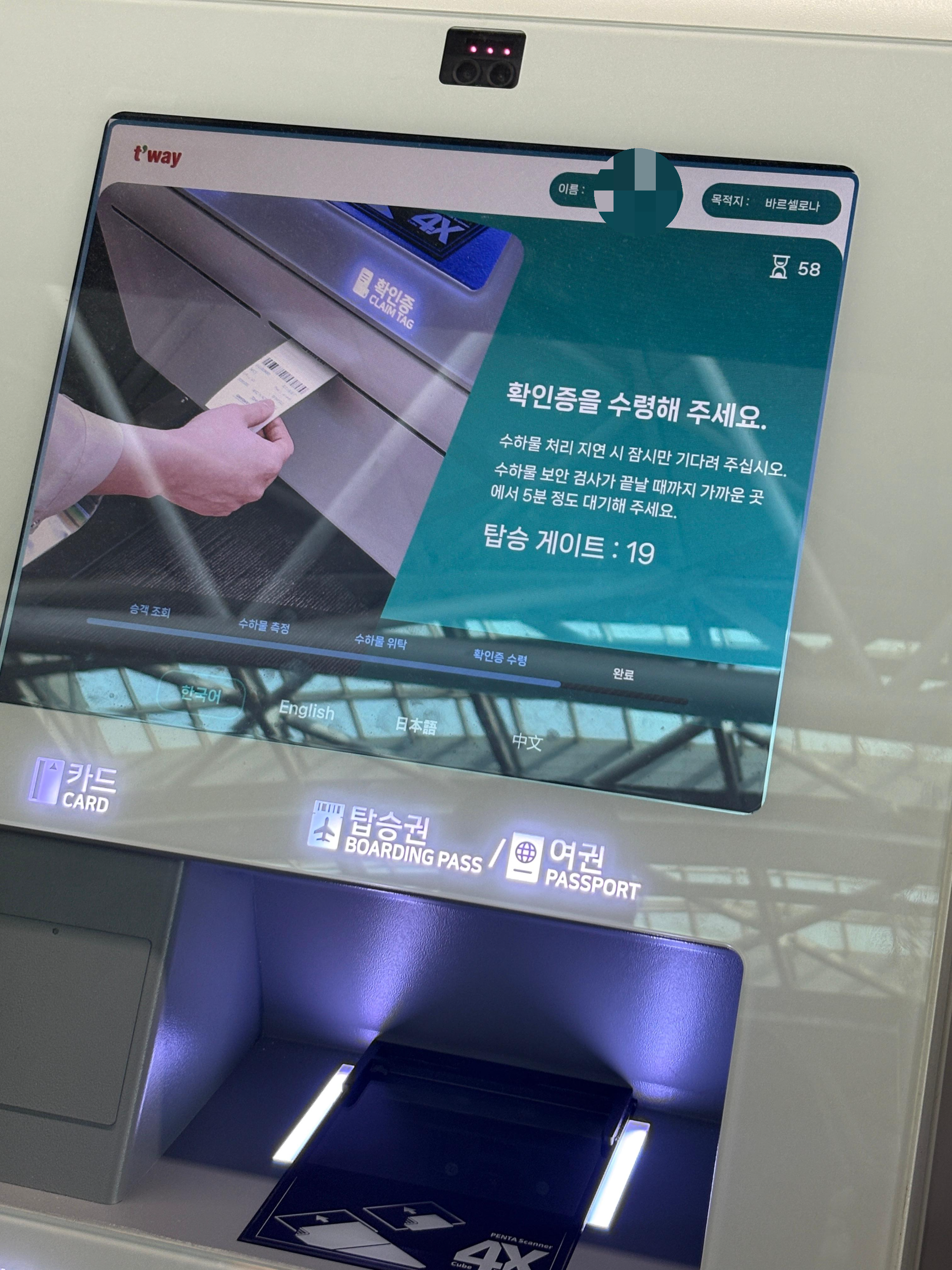 일단 키오스크에서 단계마다 친절하게 사진과 함께 설명이 나오기 때문에 그대로 하면 된다.