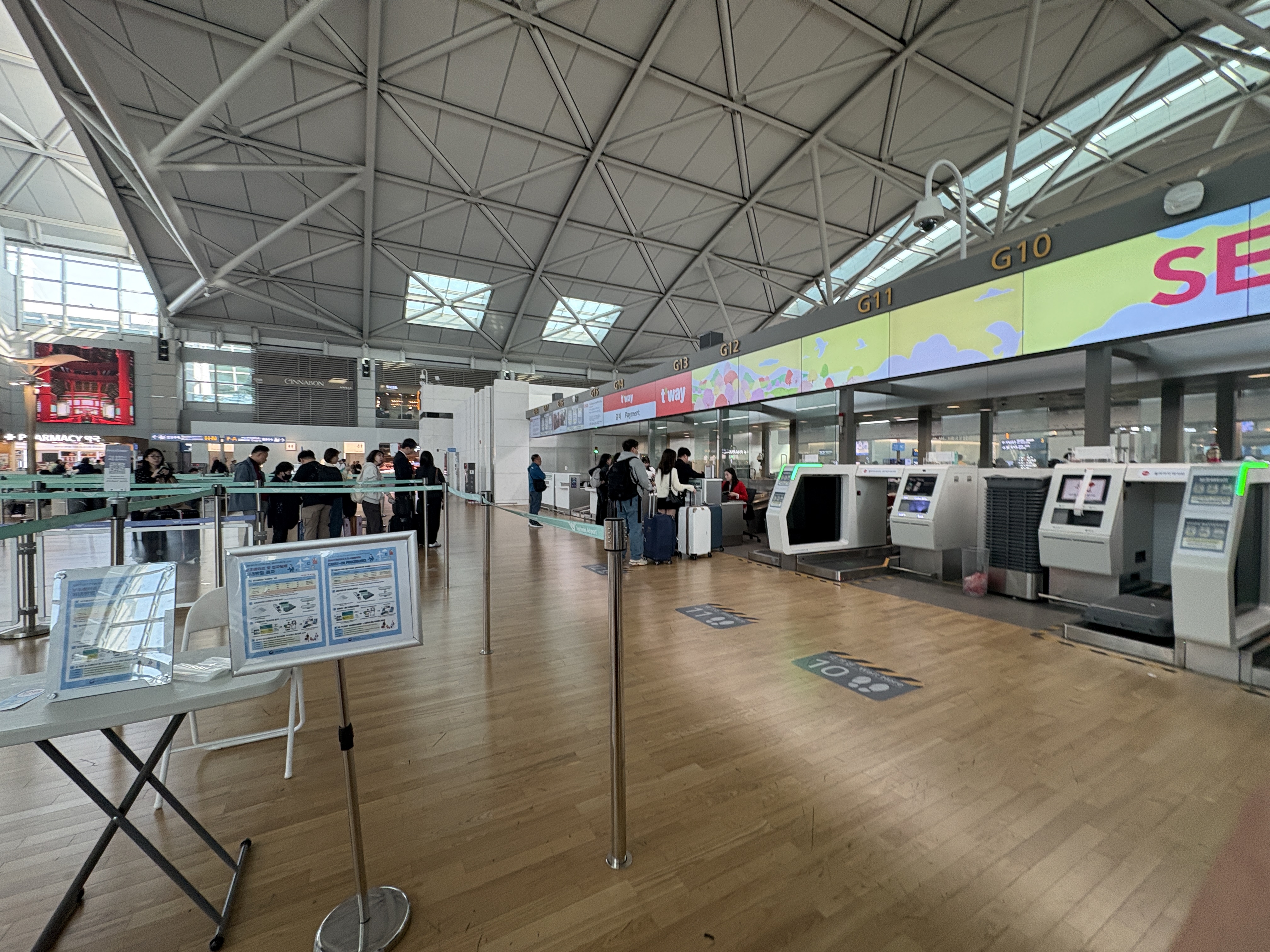 보이나? 마침 셀프백드랍 창구 옆이 티웨이 창구였는데, 대기줄이 길다.