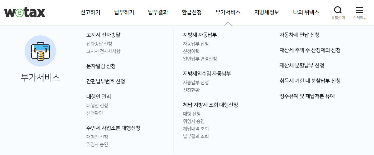 - 위택스 웹 접속 (https://www.wetax.go.kr/main/)