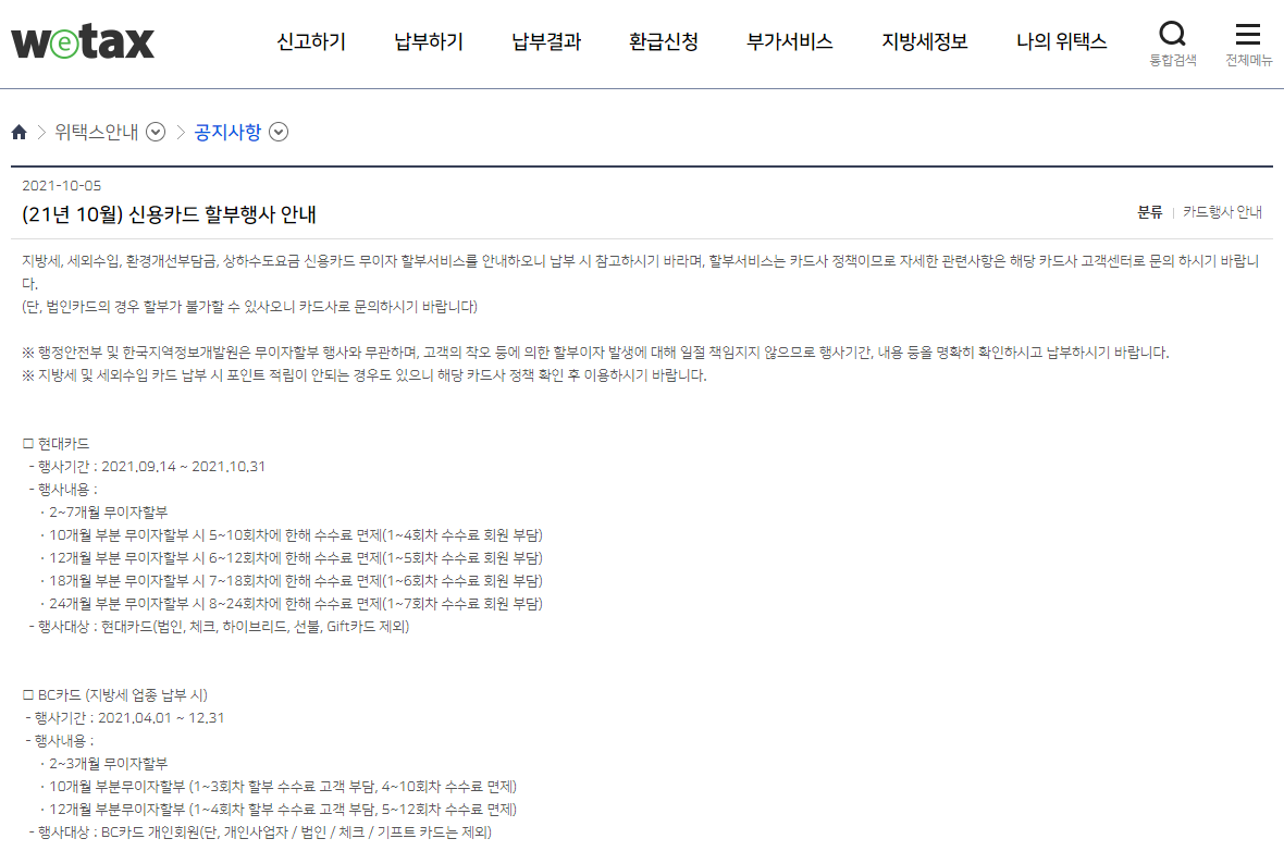 - 취득세 결제하게 될 달에 좋은 조건으로 할부가 제공되는 신용카드를 미리 파악하고 있다가 그걸로 결제하자.