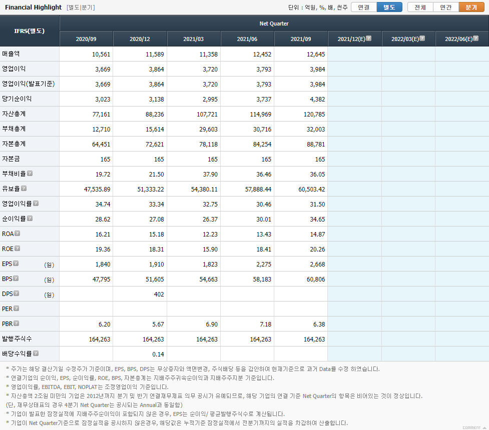 | 분기년월 | 202109 | 최근 결산 분기 |