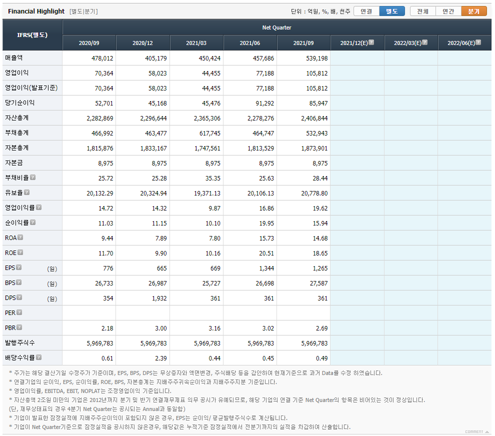 | 분기년월 | 202109 | 최근 결산 분기 |
